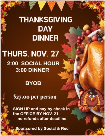 Nov 27 Thanksgiving Day Dinner, in the Clubhouse
