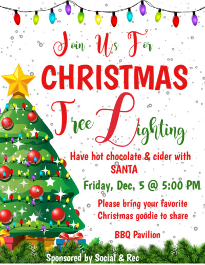 Dec 5 Tree Lighting *, at the BBQ Pavilion, 5 PM