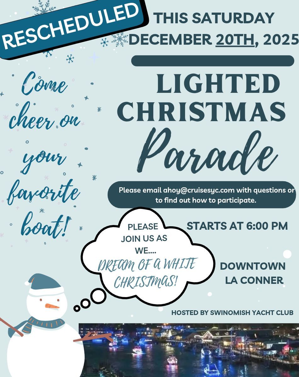 Dec 20 Rescheduled, Swinomish Yacht Club Lighted Christmas Parade, La Conner, 6:30 PM