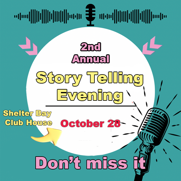 Back by overwhelming demand. Join us for the 2nd Annual Shelter Bay Storytelling Evening with your neighbors and friends.